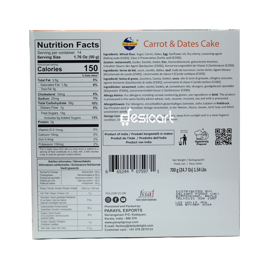 DAILY DELIGHT CARROT & DATES CAKE 700G